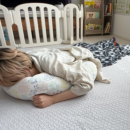 抱き枕スタイルで